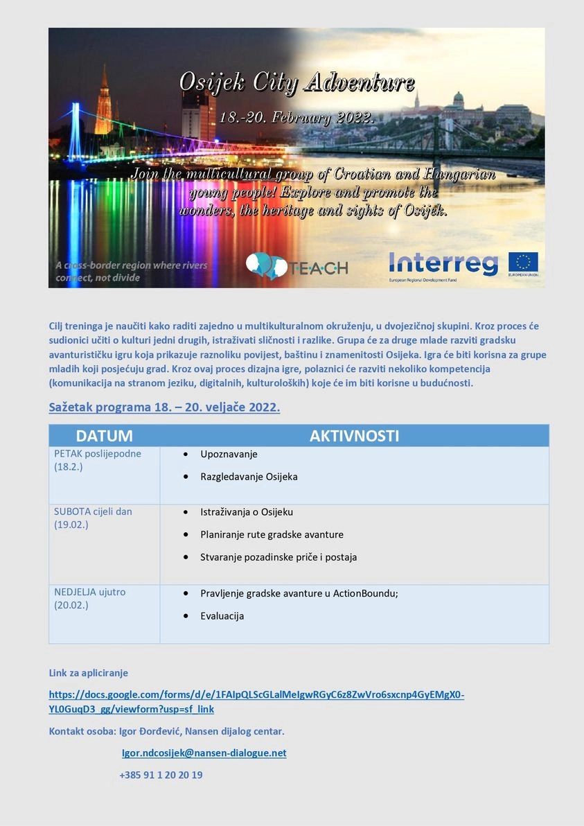 Osijek city adventure je pravi seminar za tebe, povezujemo mlade osobe iz Osijeka i Pečuha!