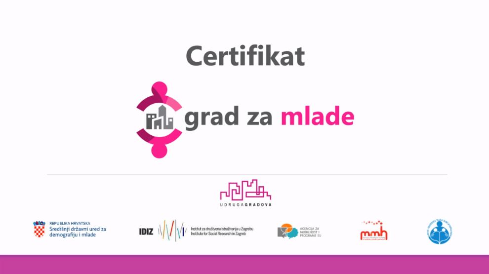 Naime, Udruga gradova u Republici Hrvatskoj, u suradnji s partnerskim organizacijama i institucijama, pokrenula je proces izrade sustava certificiranja hrvatskih gradova na polju provedbe lokalnih politika za mlade, koje je namijenjeno donositeljima odluka i predstavnicima gradskih uprava.