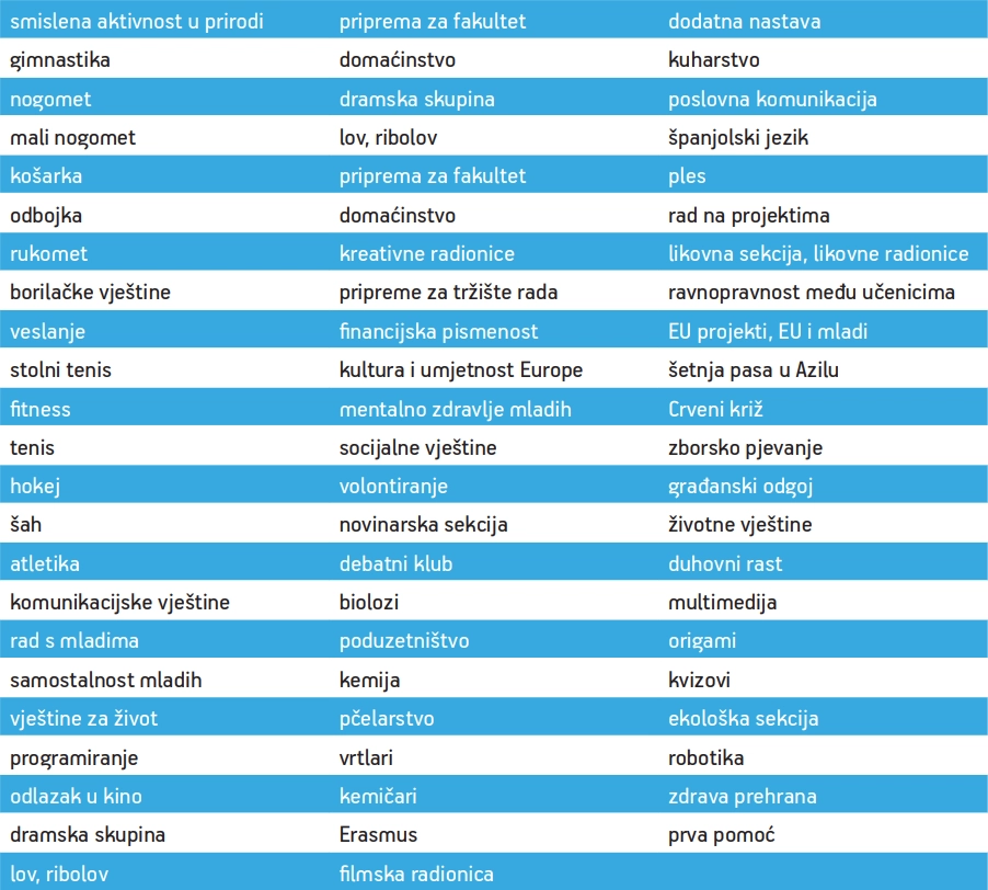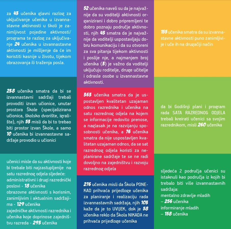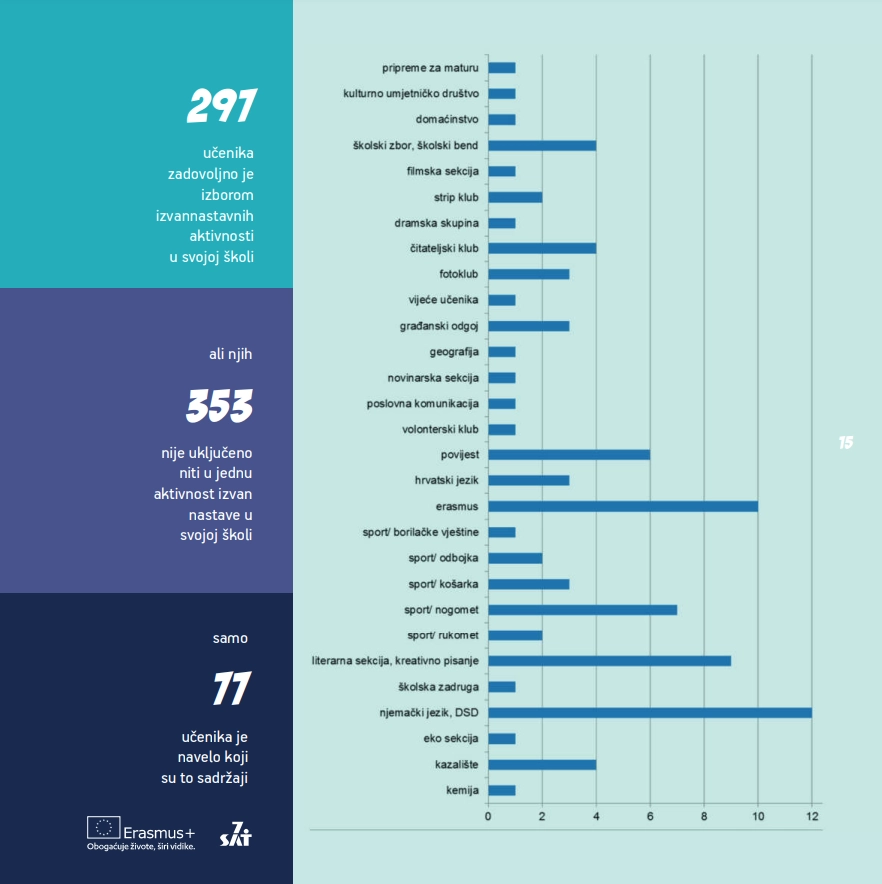 Kroz upitnik “Izvannastavne aktivnosti po mojojmjeri” istražili smo razinu informiranosti učenikai njihovu uključenost u provedbu izvannastavnihsadržaja kroz izvannastavne aktivnosti te sat razrednog odjela u njihovoj školi 440 ISPITANIKA!(390 mrežnim putem i 50 tiskanih upitnika)